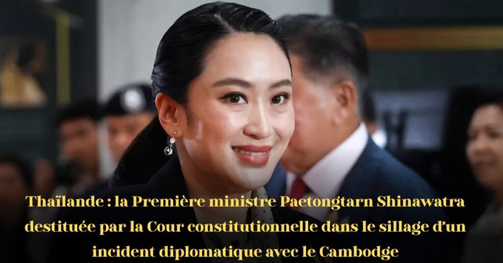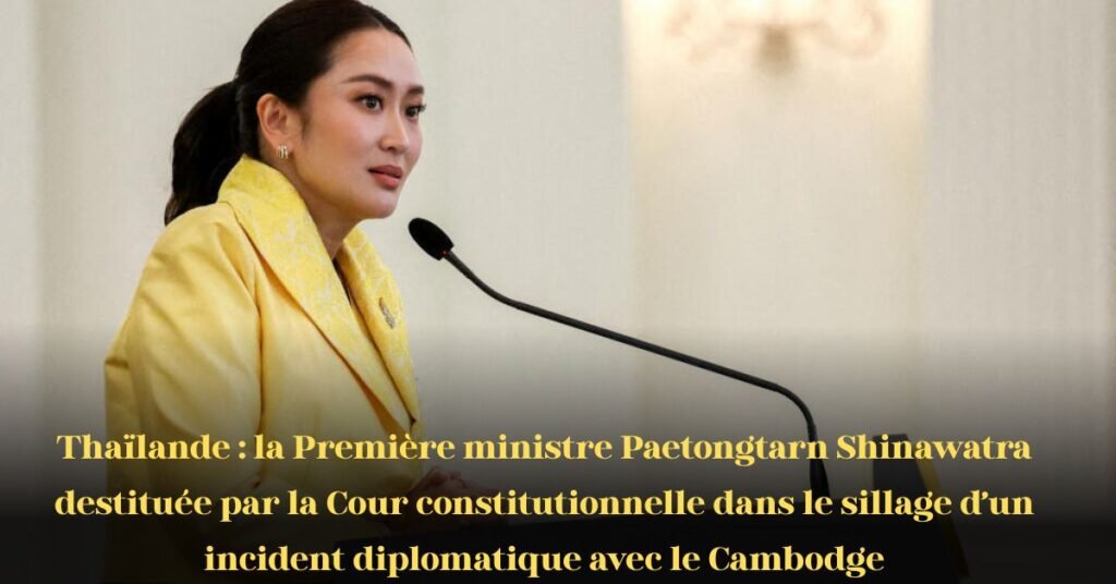 Bangkok, 29 août 2025 — La Première ministre émergente de Thaïlande, Paetongtarn Shinawatra, a été destituée de ses fonctions vendredi par la Cour constitutionnelle, suscitant une nouvelle onde de choc politique dans le pays.